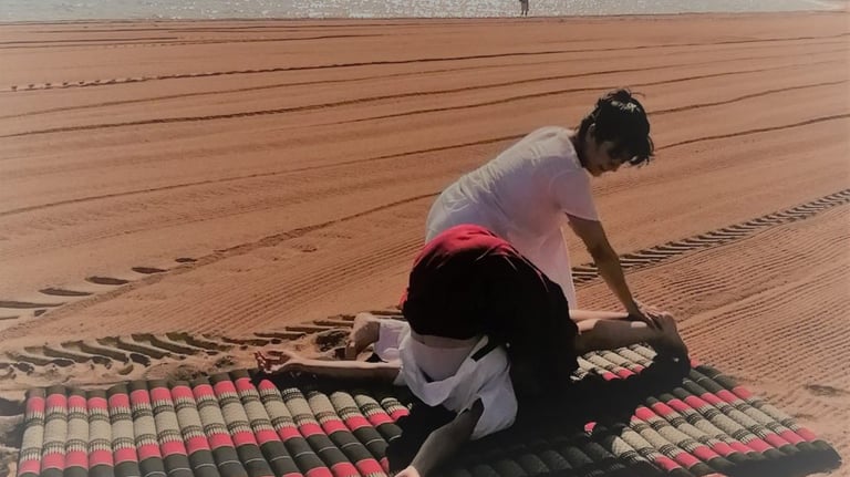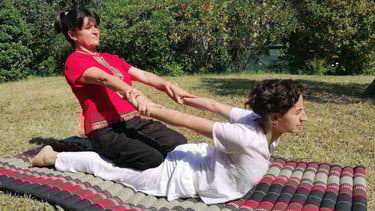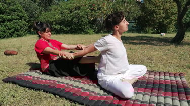 Variante du massage thaï plus énergique, centrée sur l’alignement postural et le travail des lignes d’énergie.